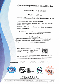 揚(yáng)州中茂液壓機(jī)械有限公司是一家專業(yè)研發(fā)和生產(chǎn)液壓成套設(shè)備和耐磨材料的公司,公司位于江蘇省揚(yáng)州市。公司現(xiàn)有各類技術(shù)員工80余人,耐磨復(fù)合鋼板具有年產(chǎn)量80000平方米的生產(chǎn)能力,焊接材料具有年產(chǎn)量5000噸的生產(chǎn)能力。